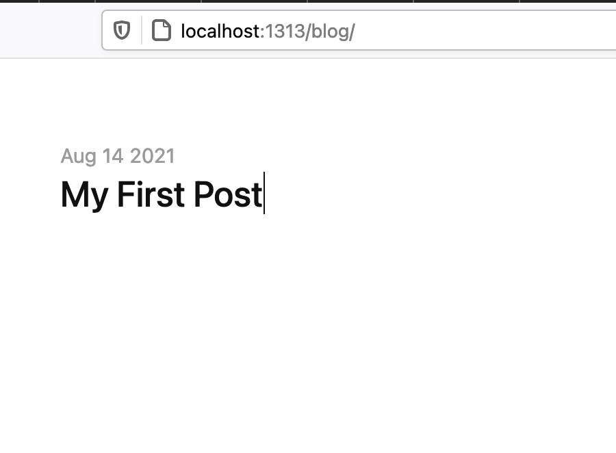 If we go back to the website, there is no way of finding this blog post! We still don’t have a menu to access this, but if we go to /blog we can see that our brand new blog post is there!
